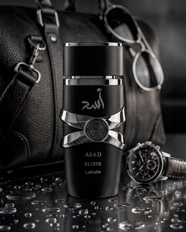 Use the uploaded reference image as the base composition and recreate the exact same luxury scene, maintaining camera angle, lighting, environment, object placement, reflections, water droplets, depth of field, and overall cinematic mood. Replace only the perfume bottle with the new provided fragrance bottle while preserving the rest of the scene unchanged. The new perfume bottle must perfectly integrate into the existing setup, matching the original perspective, scale, orientation, and lighting direction. Adapt reflections and highlights on the glass and metallic cap to match the surrounding environment. Ensure the liquid inside the bottle interacts realistically with the light, producing natural refraction, internal reflections, and warm glow if applicable. Maintain the reflective metallic surface with scattered water droplets exactly as in the reference. Keep the surrounding elements — aviator sunglasses, luxury wristwatch with leather strap, and brown leather bag — in the same positions, with identical blur levels and depth of field. The cinematic teal and amber color grading must remain consistent with the original aesthetic. The new bottle label must be clean, sharp, and readable, with realistic printing texture and correct perspective distortion. Adjust shadows beneath the bottle so it feels physically grounded in the scene. Preserve the dramatic side lighting, cool ambient tones, and warm highlights interacting with the glass and metal surfaces. Do not alter background composition, do not reposition accessories, do not change camera framing. Only substitute the perfume bottle while maintaining a seamless integration. Ultra-realistic 8K luxury product photography, cinematic depth of field, high dynamic range, physically accurate materials, premium commercial fragrance campaign quality.